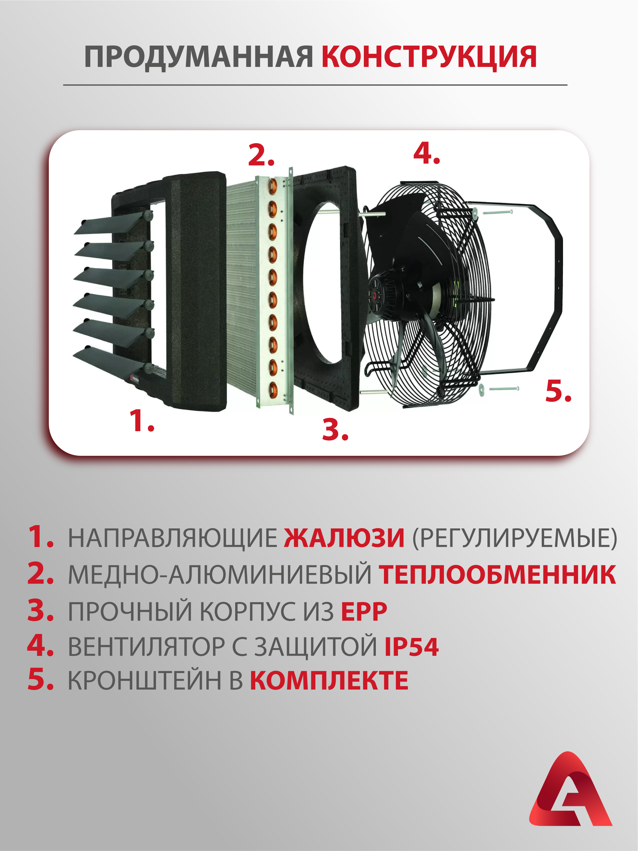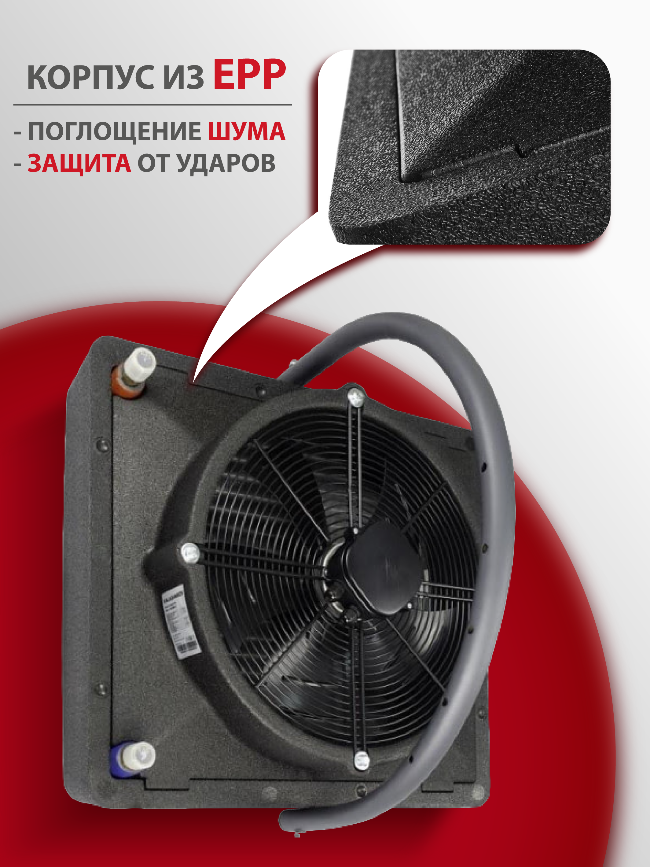 Водяной тепловентилятор Shtifel полный аналог знаменитого Ballu BHP-W3-30-S – прибор для обогрева коммерческих помещений небольшого и среднего объема. Однорядный медно-алюминиевый теплообменник с увеличенной поверхностью теплоотдачи обеспечивает тепловую мощность до 45,6 кВт. А энергоэффективный трехскоростной двигатель с увеличенным сроком наработки на отказ от 30 000 часов обеспечивает производительность 3000 м³/ч и длину струи теплового воздуха до 15 метров, при этом не требует приобретения дорогостоящей автоматики для регулировки производительности. Корпус прибора выполнен из вспененного полипропилена высокой плотности, который устойчив к механическим повреждениям, не требует ухода и консервации и обладает высоким уровень шумопоглощения. Тепловентилятор комплектуется универсальным кронштейном BHP-B2, который позволяет монтировать прибор на стену или потолок и регулировать угол наклона в горизонтальной и вертикальной плоскости.